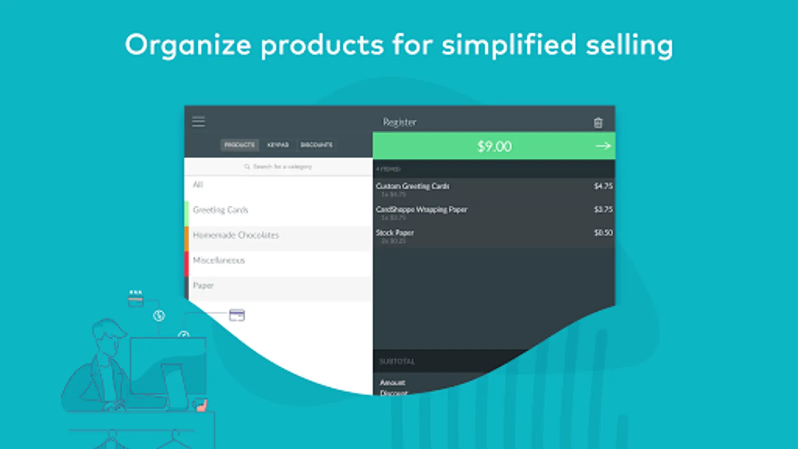 •Catalog: Organize and manage your products, pricing, and discounts.