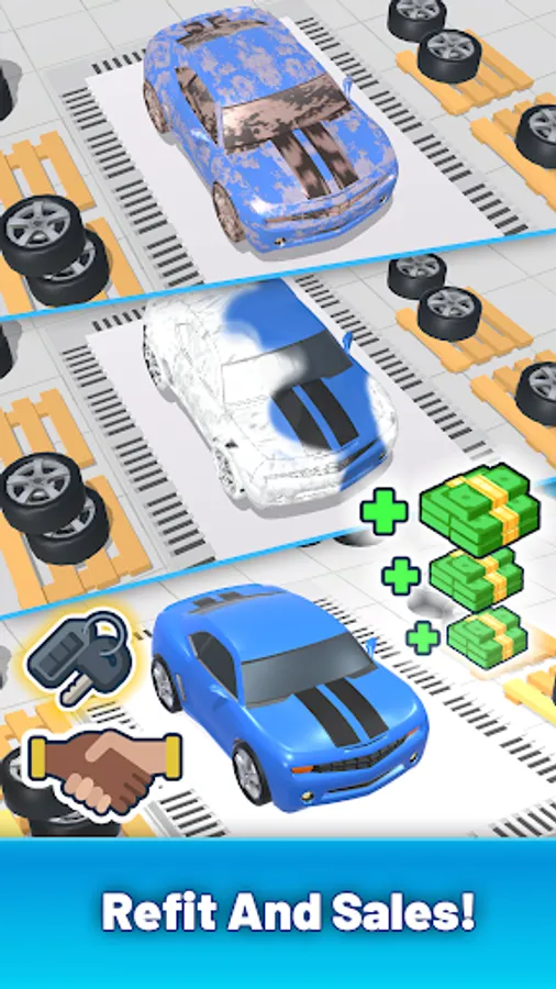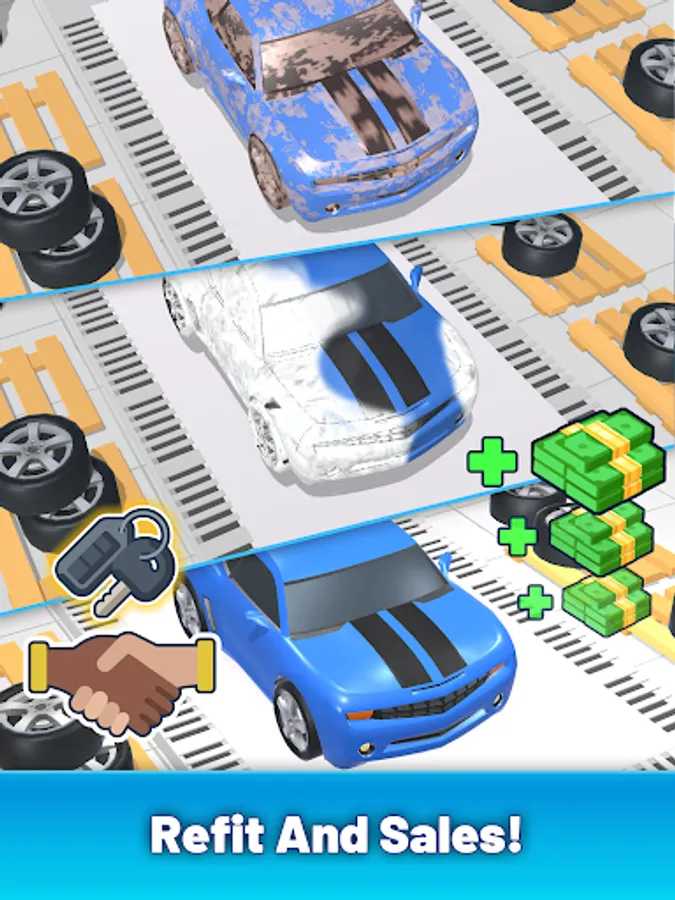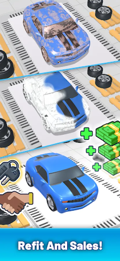 Buy and repair cars, unlock facilities and expand marketing to attract more customers and increase profits. Build your used car empire and become a car tycoon.