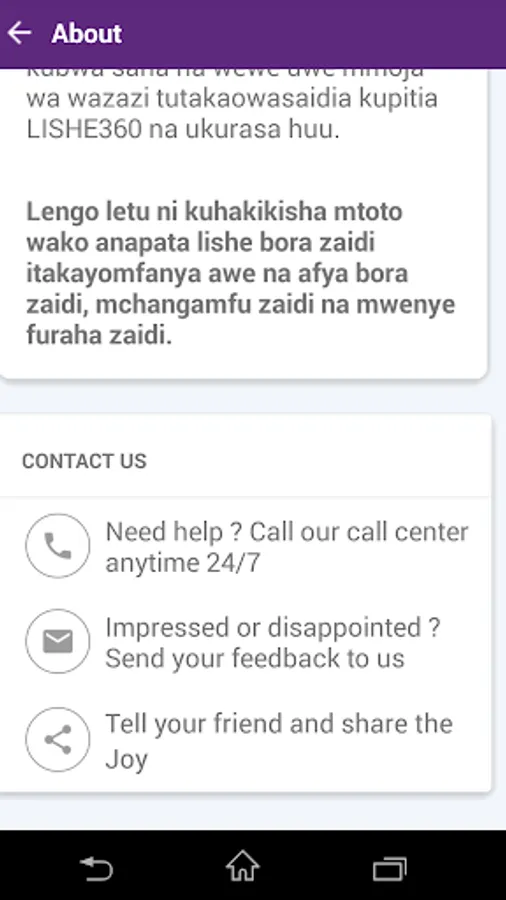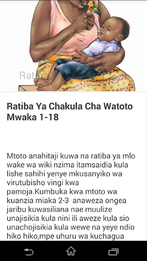 Kupitia application hii utaweza kupata ratiba za milo kamili kwa ajili ya watoto kuanzia miezi 6 mpaka miaka 5, wajawazito na akina mama wanaonyonyesha.