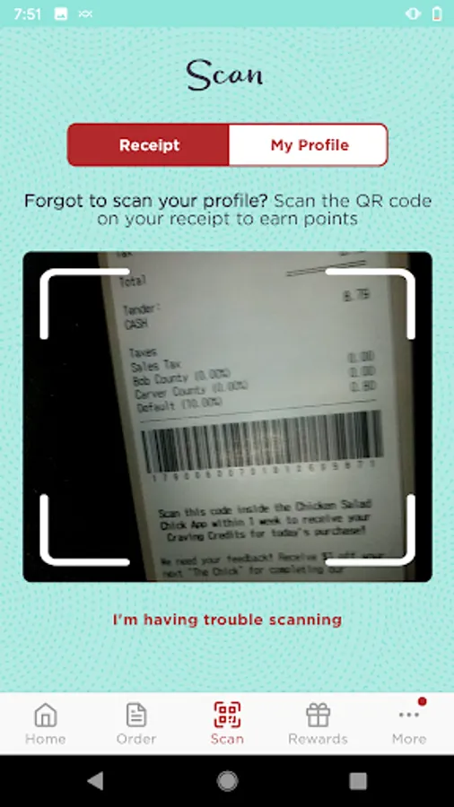Scan: Scan your receipt to Or show your “Loyalty Profile” at the register when you order, and you will earn 1 point for every $1 you spend at the Chick.