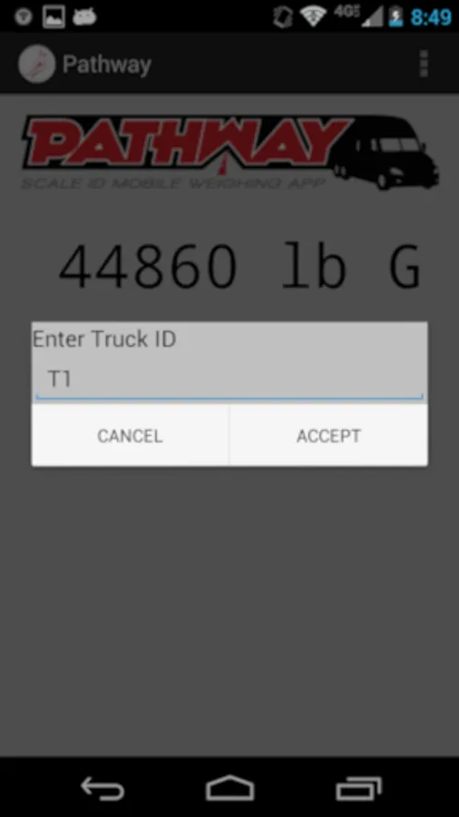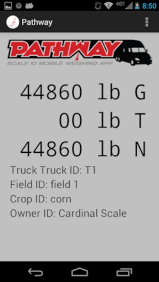 Pathway provides the power of an NTEP 825 indicator's weight display (using a wireless network) in a mobile device allowing truck drivers the efficiency of remaining in their truck while weighing.