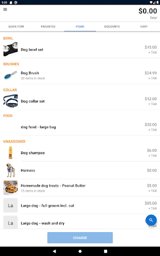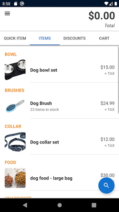 Keep track of inventory by uploading an existing inventory list to SwipeSimple or by adding items manually through the app.