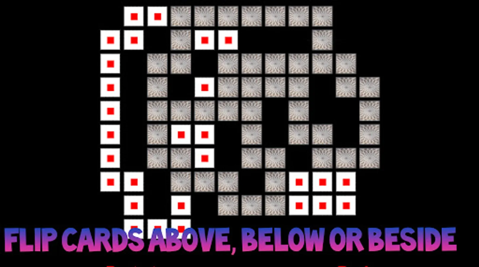 Start with flipping a single card over. Next, you can flip any card above, below or to the side of the previously flipped card. Keep going until all cards are flipped. Can you get through all levels?