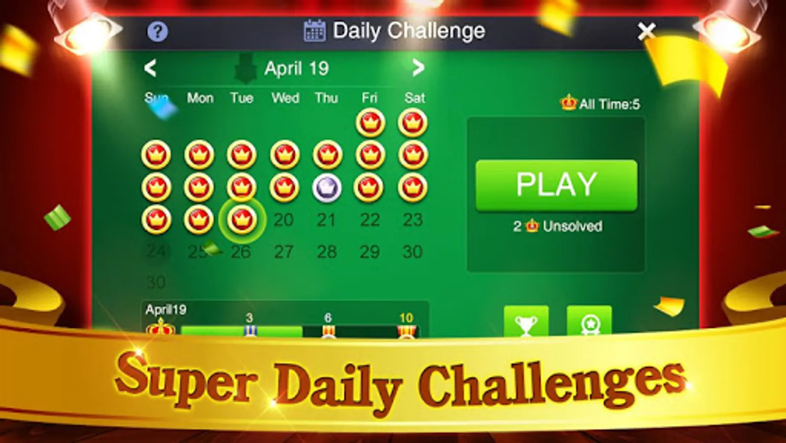 Solitaire is a fun and challenging classic card game that anyone can enjoy. With Themes and Daily Challenges, you will find our Solitaire to be the best one.