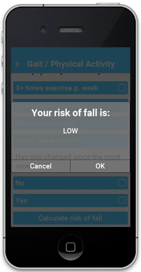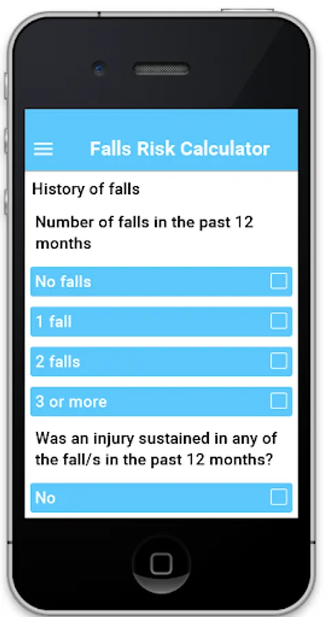 The app uses the 1000lives questionnaire to evaluate the risk of falls: