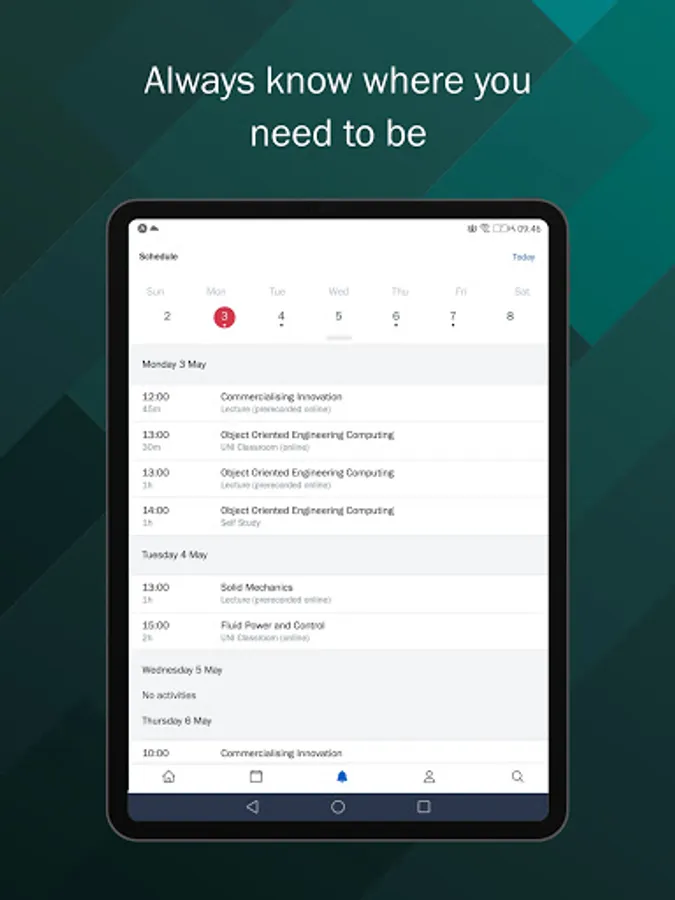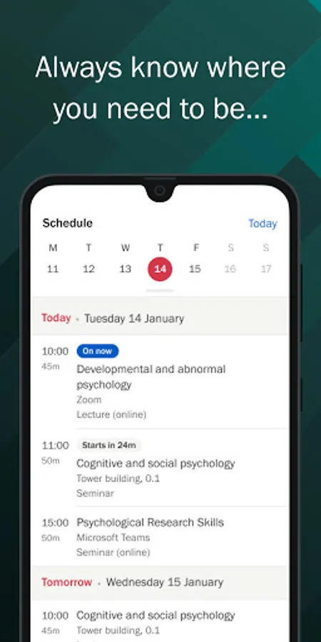 A calendar containing your personalised teaching timetable helps you know where you need to be, how to get there, and when you need to prepare.