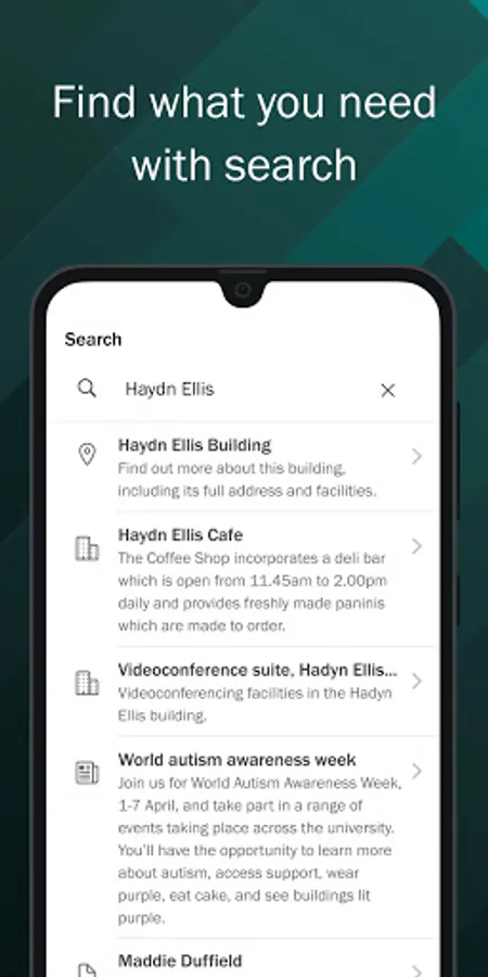 Chwiliwch am leoliadau o amgylch y Brifysgol, cyfleusterau, gwybodaeth gyffredinol a gwasanaethau defnyddiol eraill o amgylch Caerdydd.