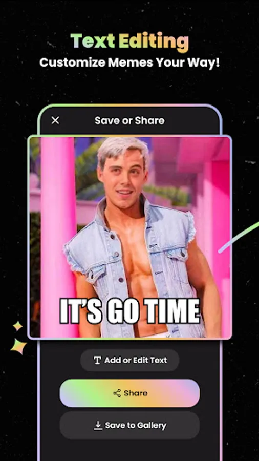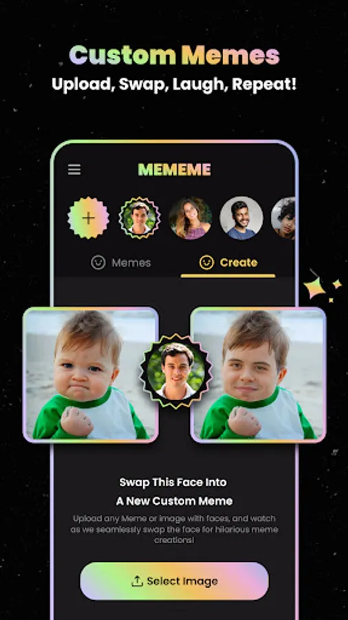 🎨 Meme Creator: Unleash your creativity with our custom meme maker. Use your own photos or choose from our massive library of meme templates, and give them a personal touch with the MemeMe face swap and text editor features.