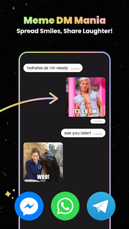 💬 Social Sharing: An image speaks a thousand words. With one tap, you can directly share your custom meme and gif with friends and family on various instant messaging and social apps, like WhatsApp, Messenger, Line, Instagram, and more!