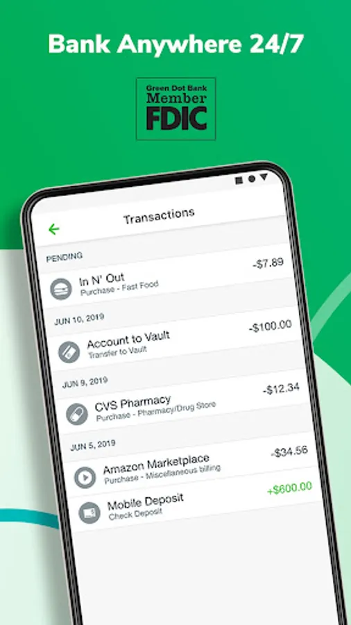 ⁵ Available on our Green Dot Cash Back Visa® Debit Card. Cash back is earned on qualifying online and mobile purchases. Cash back cannot be used for purchases or cash withdrawals until redeemed. Claim the cash back every 12 months of use and your account being in good standing.