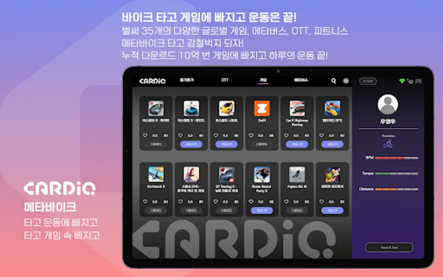 • Cardio Hub is a metabike curation app that recommends games/contents that are optimal for exercise.
