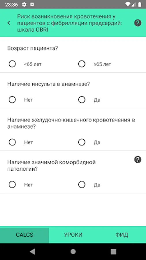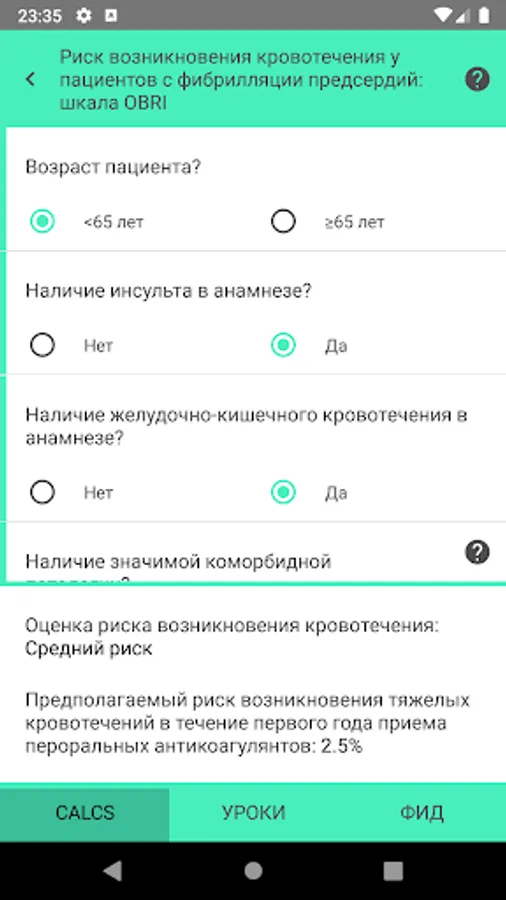 * Risk of bleeding in patients with atrial fibrillation: ORBI scale