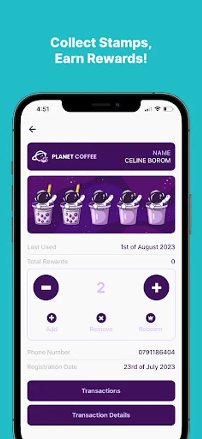 The employee side of the kiosk allows staff to easily stamp and update loyalty cards for customers. With a few simple clicks, employees can track customer purchases and loyalty points, creating a rewarding experience for loyal patrons.