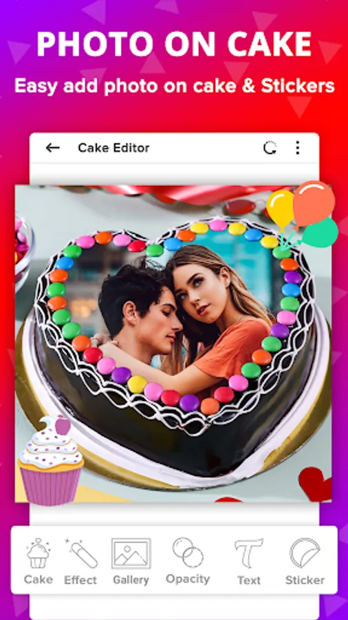 - Free and Easy to use & User Friendly interface in birthday photo on cake app