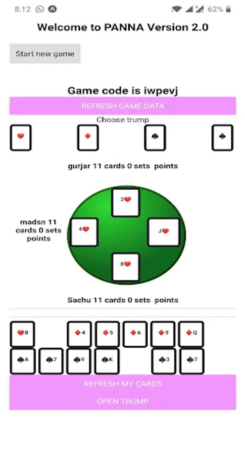 4) The player who has choose maximum points will now choose trump and will choose partner after all cards are distributed.