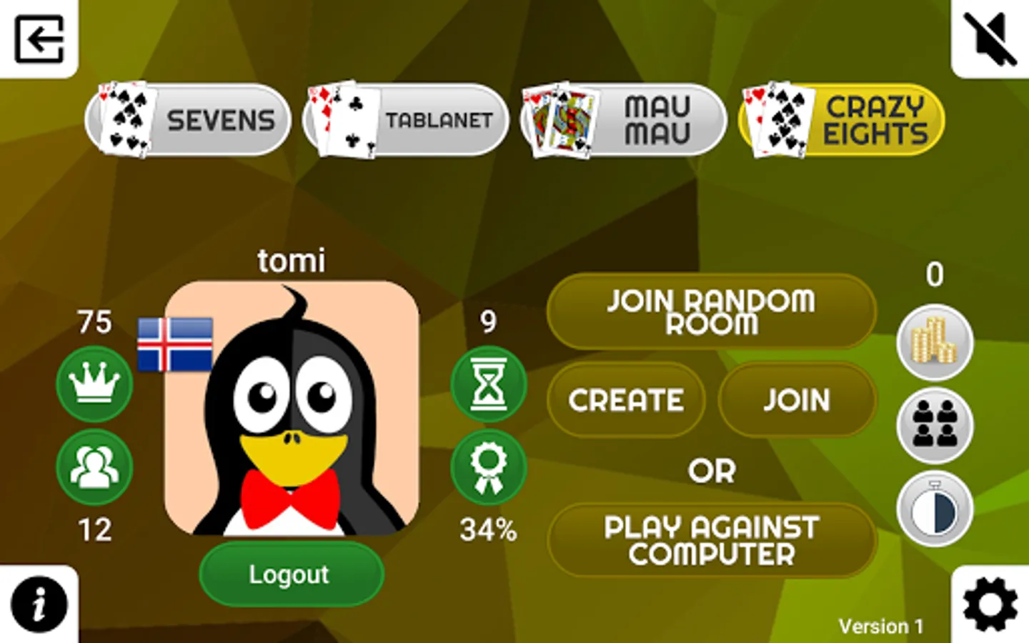 This is one card game to rule them all. Currently included games are Crazy Eights, Mau Mau, Sevens and Tablanet.