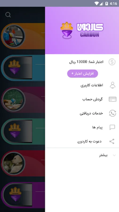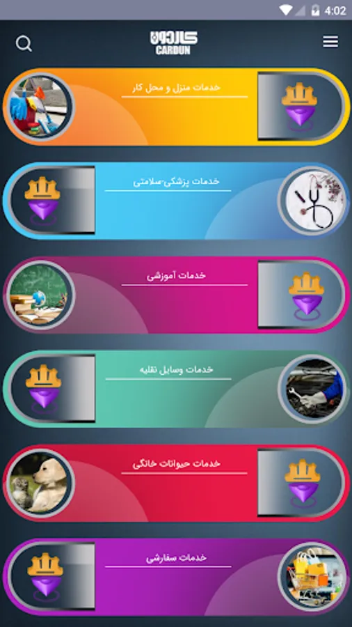 The Cardon program is designed to connect clients to a wide range of services provided by authorized service providers throughout the city of Tehran, with the aim of providing easy access to the services they need 24 hours a day, seven days a week, in a secure and attractive environment. Users can easily find and interact with the nearest service providers in the shortest time possible and get the best service if agreed. This system has other features like online payment, discount code, gift, support and more.