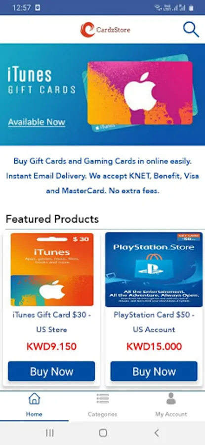 We deliver the cards instantly by email. We accept KNET, Benefit, Visa and MasterCard. These payments are secure and we do not store any card information on our servers.