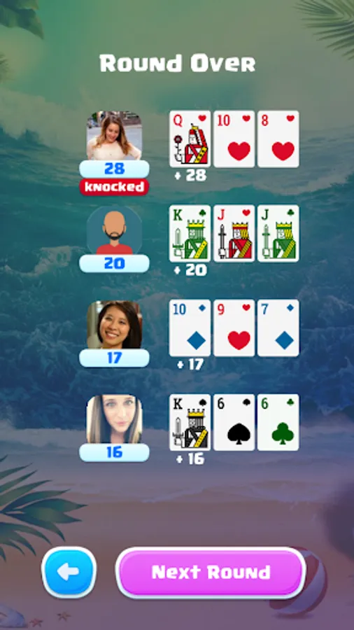* At the beginning of your turn, you have the option to "knock" (the knock button will show up at the beginning of your turn). If you knock and you have exactly thirty-one points you win instantly, otherwise, you lose your turn and the users will have 1 more turn before the round is over