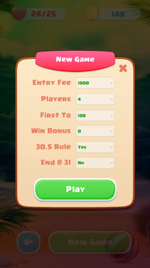 ✔ Thirty and a half rule (if on, the player will receive 30.5 points for any 3-of-a-kind)