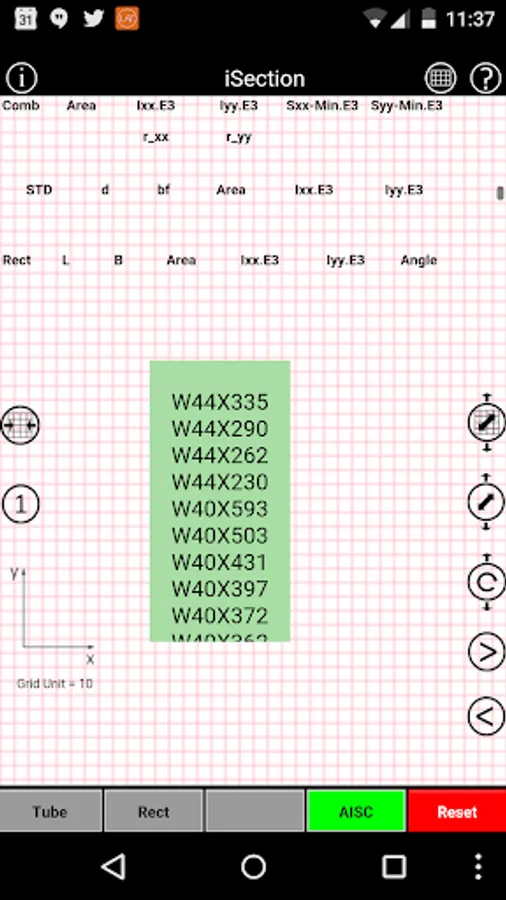 - Add a component by tapping on the buttons: "STD", "EN", "AISC", “Tube” or “Rect”.