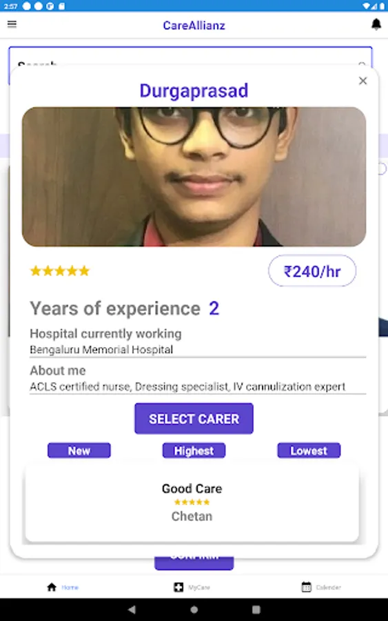 * Choose from trusted, verified nurses,physio empowering you on who should come home.