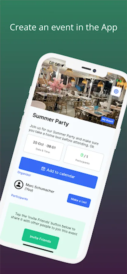 * Each invitee decides: I can participate in the event (and therefore do a home test) or decide not to take part (no reason needs to be provided)