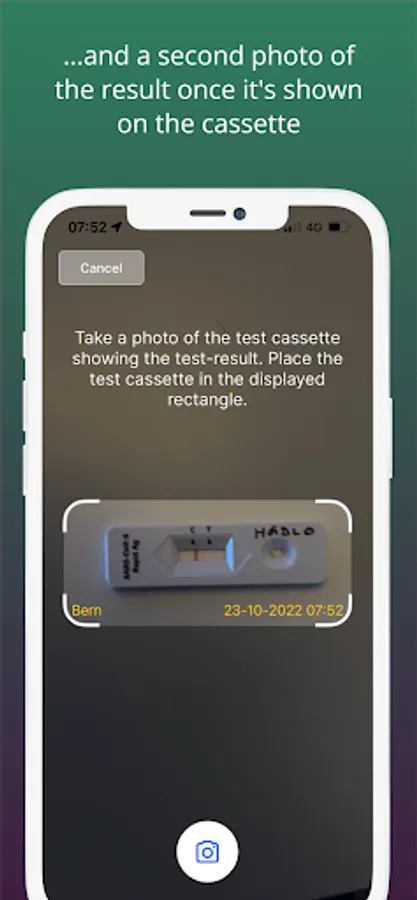 * Once the test is finished you take another photo showing the test-result on th same cassette.