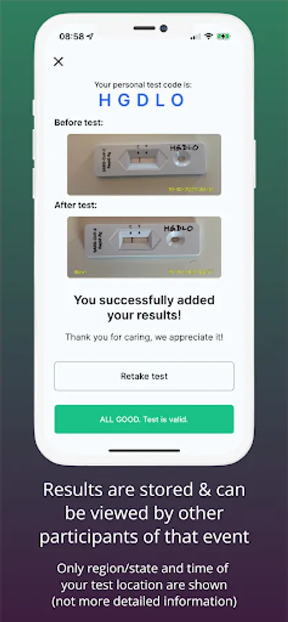 It basically let's people do a home-test (of their own choosing) and share the before/after results of the testing with others. So that everyone can feel safe meeting.