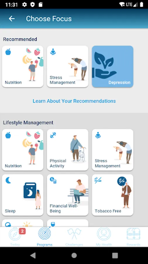 • Everyone’s health and well-being needs are extremely different. With hundreds of programs to choose from, you decide what goal want to work on and we’ll support you every step of the way with reminders to track your activity and links to helpful articles, videos, tips and more.