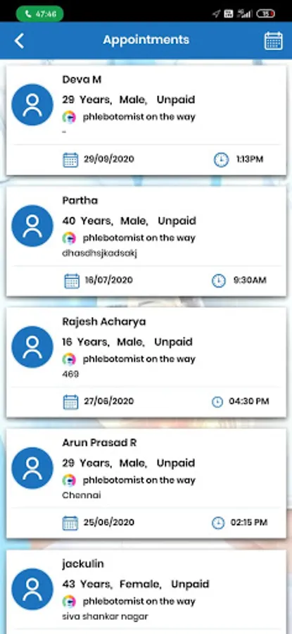 This app fully satisfies rider and phlebotomist home collection workflow. Users can book a new appointment. They can collect the amount.