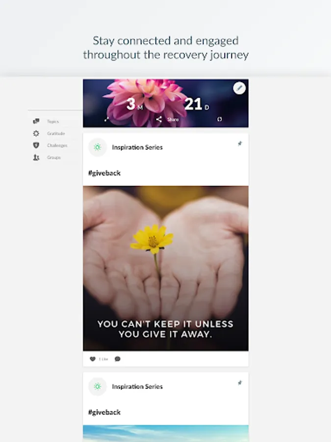 * Recovery Content: Explore videos, podcasts, and articles to help you as progress in your recovery.