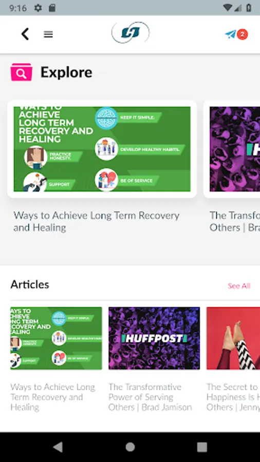 * Recovery Content: Explore videos, podcasts, and articles to help you as progress in your recovery.