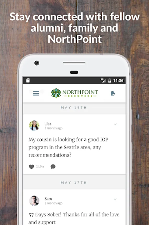 * Real-time posts: This private sober group allows you to stay connected to alumni, family and NorthPoint in real-time.