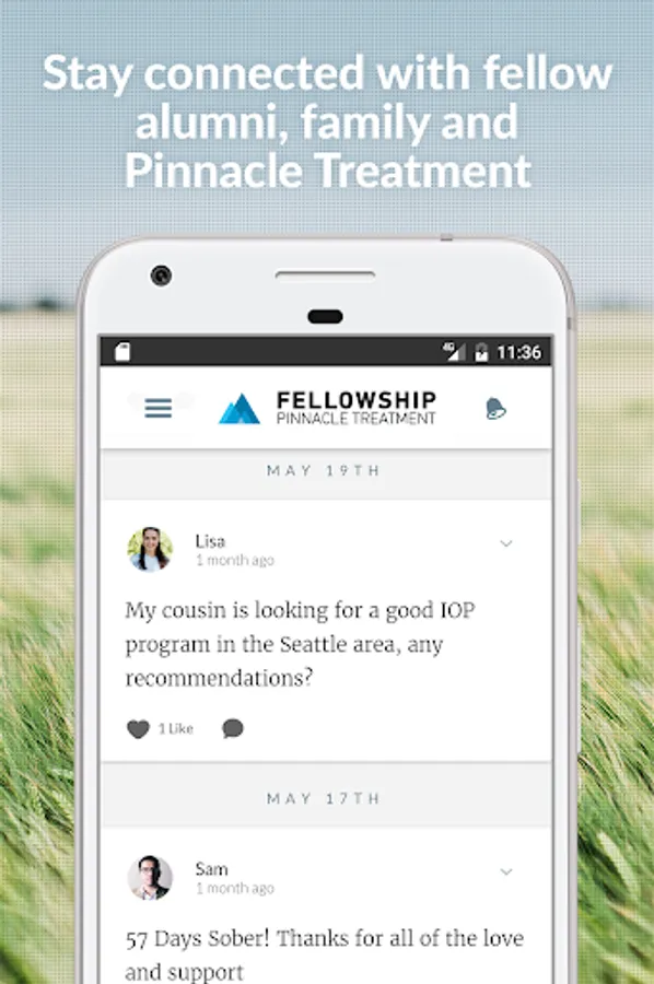 * Real-time posts: This private sober group allows you to stay connected to alumni, family and Pinnacle in real-time.