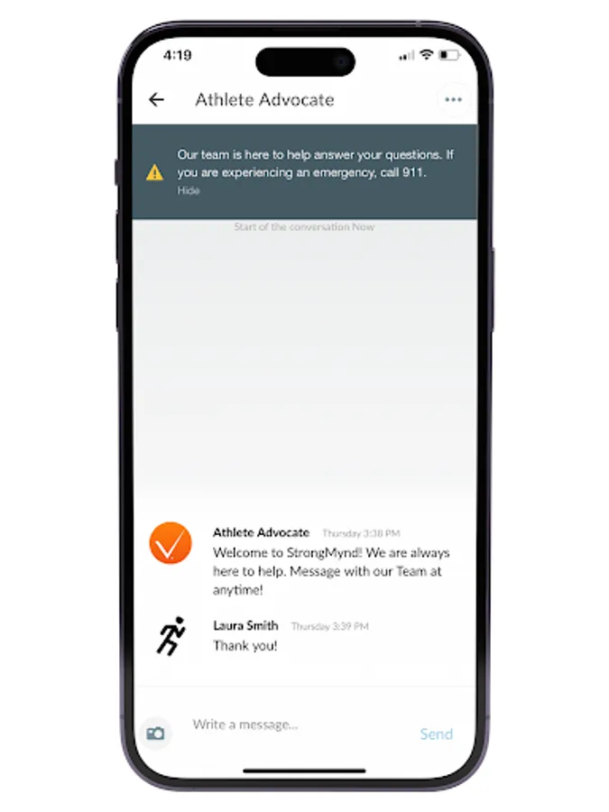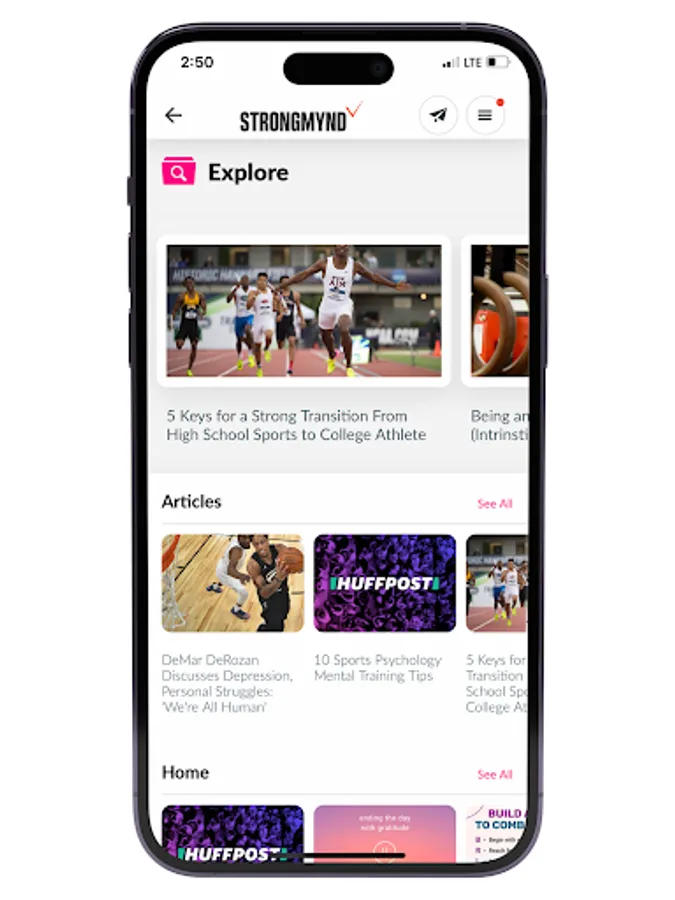 The StrongMynd mental wellness delivery system is a tech-enabled mental health and performance service platform. It is specifically designed for individuals living and operating within the diverse and unique ecosystem of elite athletics. Our app-facilitated service model is a provider-driven approach dedicated to advancing whole-person care and fostering improved health outcomes.