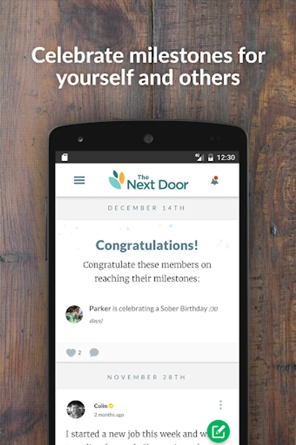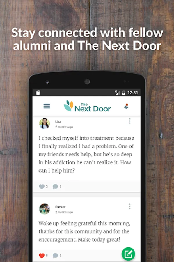 * Real-time posts: This private sober group allows you to stay connected to alumni, family The Next Door in real-time.