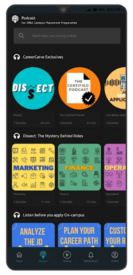 3)Listen to podcasts: Our app has hours of recorded podcasts with industry experts, making it easy to learn about MBA roles. You can listen to the "Dissect" series to better understand MBA roles, "The Certified Podcast" series to learn about certifications, or "The Super Intern" series to improve your SIP experience.