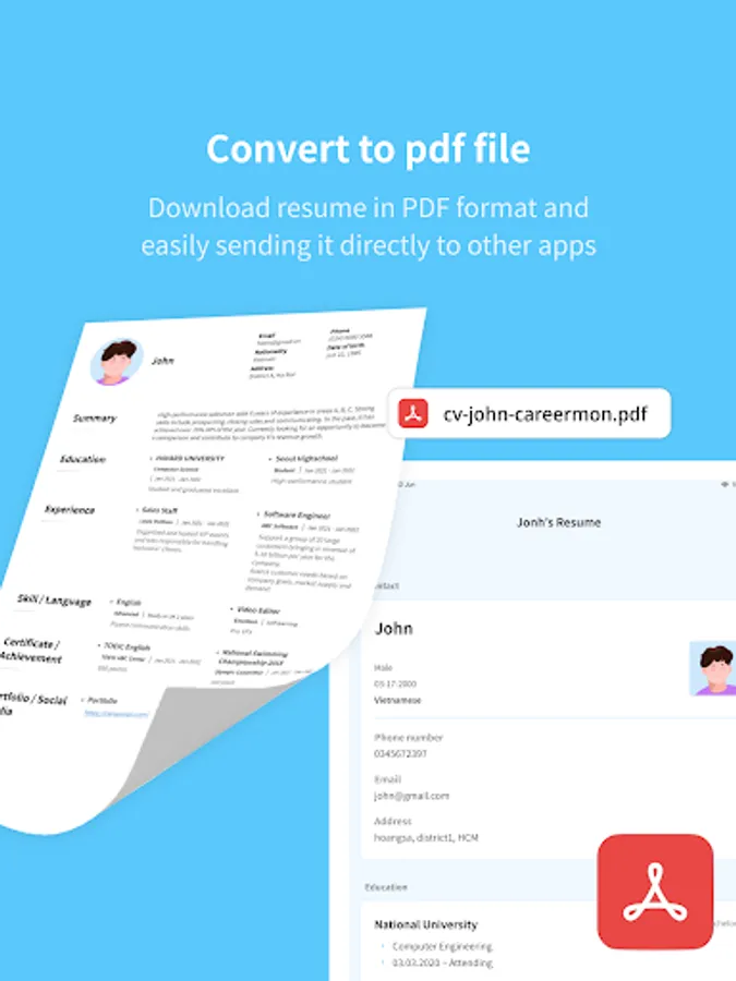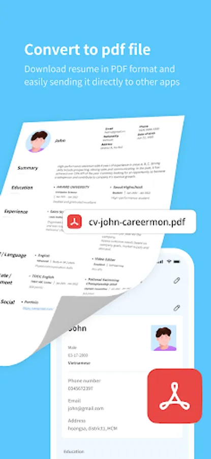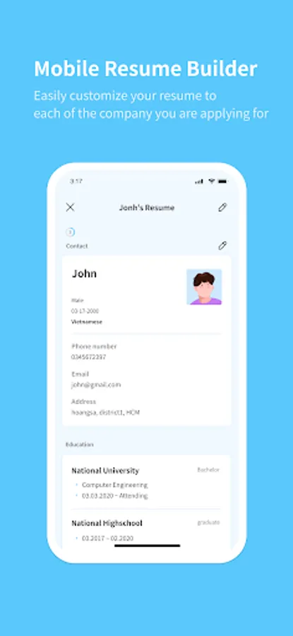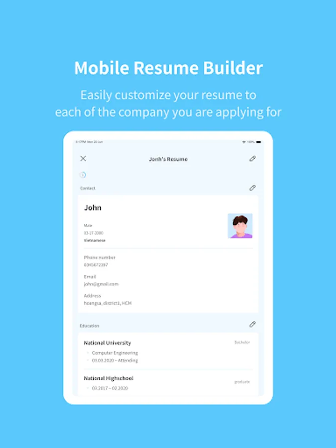 Easily and conveniently create your professional resume anytime, anywhere, using your mobile phone.