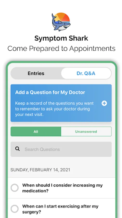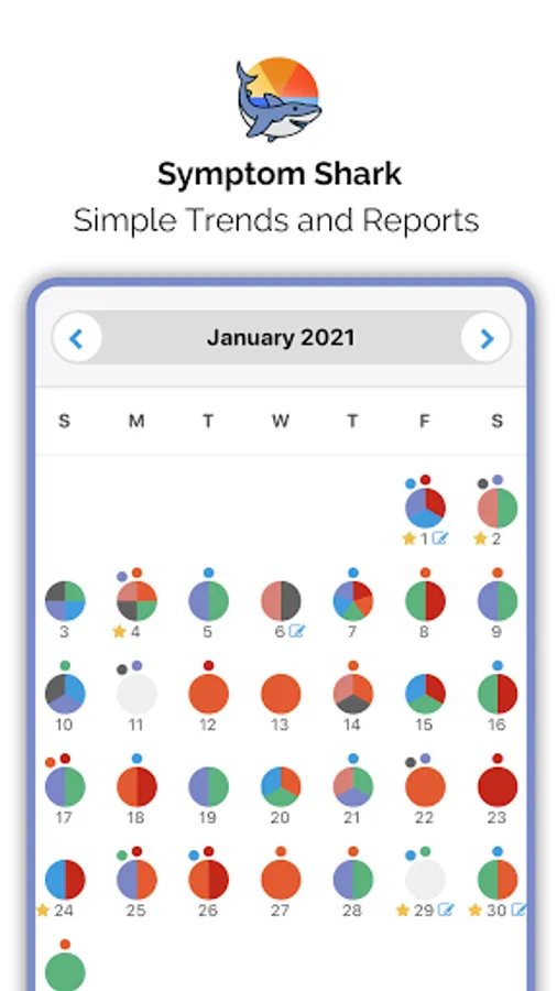 • Symptom Shark. A daily symptom tracker designed for people with multiple or complex chronic conditions. Choose the symptoms and treatments YOU want to track. Generate reports of your symptom trends to share with your doctor or other caregivers.