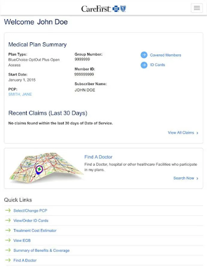 This application gives CareFirst members the ability to manage their health insurance through their mobile devices by providing secure, personalized information on items ranging from claims, deductibles, who’s covered, and downloadable ID Cards, to locating a provider or urgent care center near them. Members can also register for CareFirst’s secure member site, My Account, and maintain their account and communication preferences using the application.