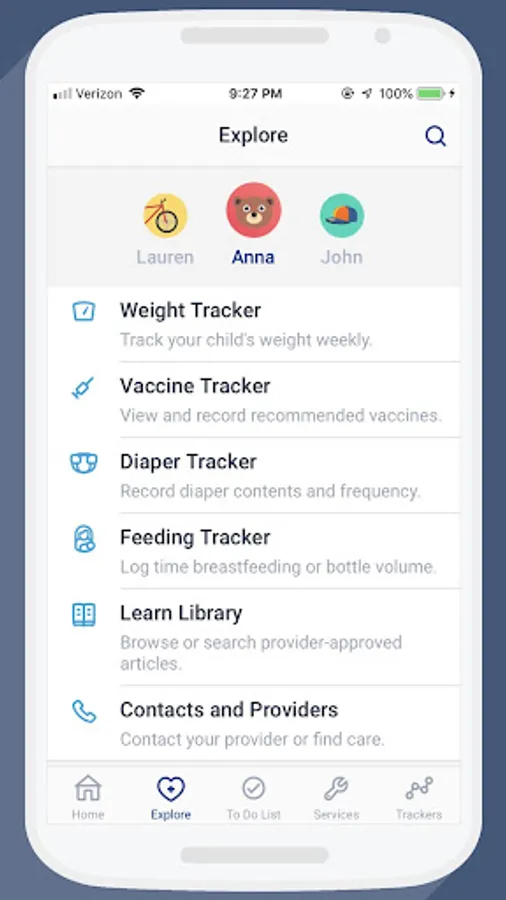 • Health-tracking tools for growth, feeding, diaper changes and vaccines.