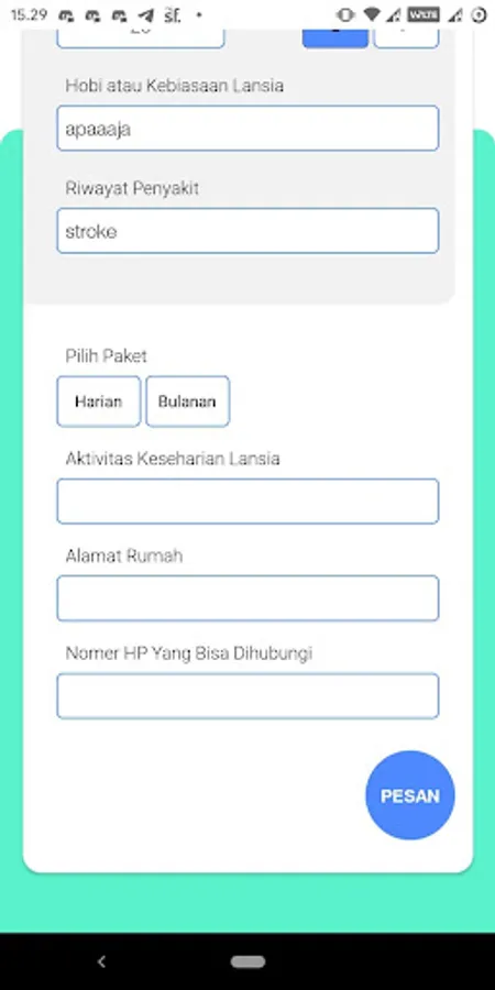 This application is used to facilitate caregiver professionals in providing assistance or care for the elderly by placing orders online with a smartphone device, so as to minimize direct orders.