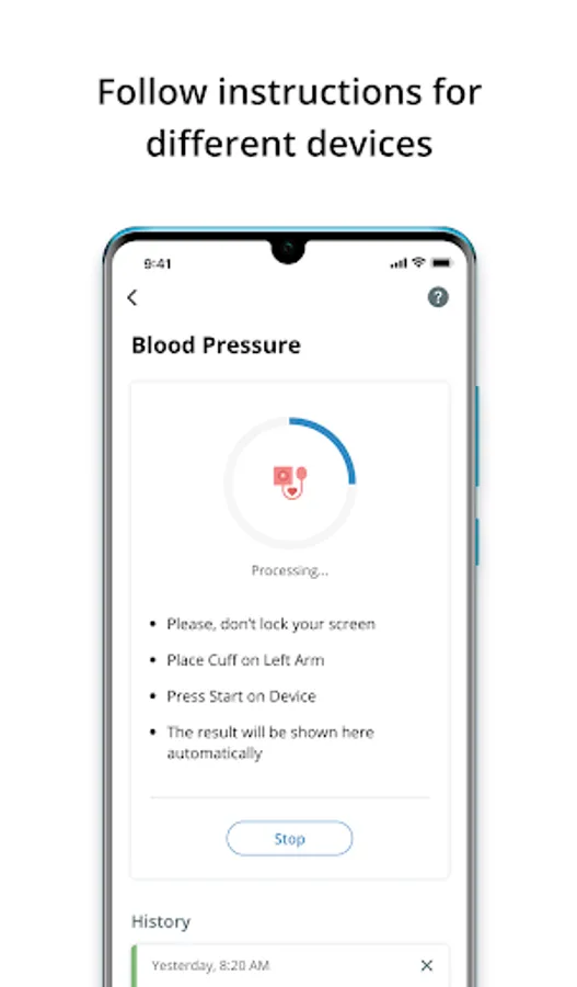 Member devices will be determined by your health care provider. Device options include blood pressure, blood glucose, thermometer, pulse oximeter, and body analyzer scale. The vital information collected in the app will be made available to your Healthcare Provider. You can see your collected vital information in the History section of the application.