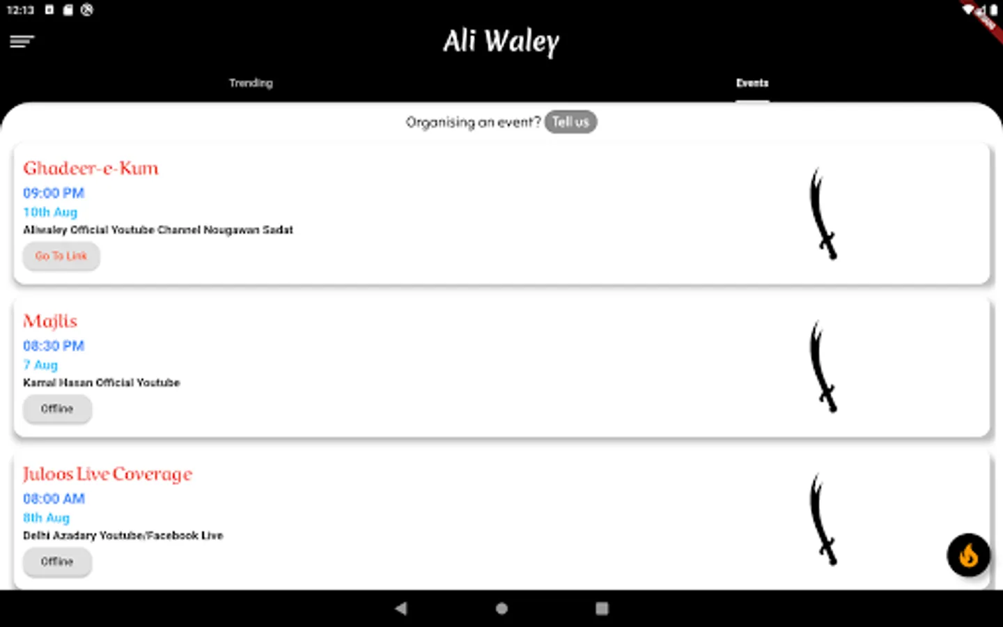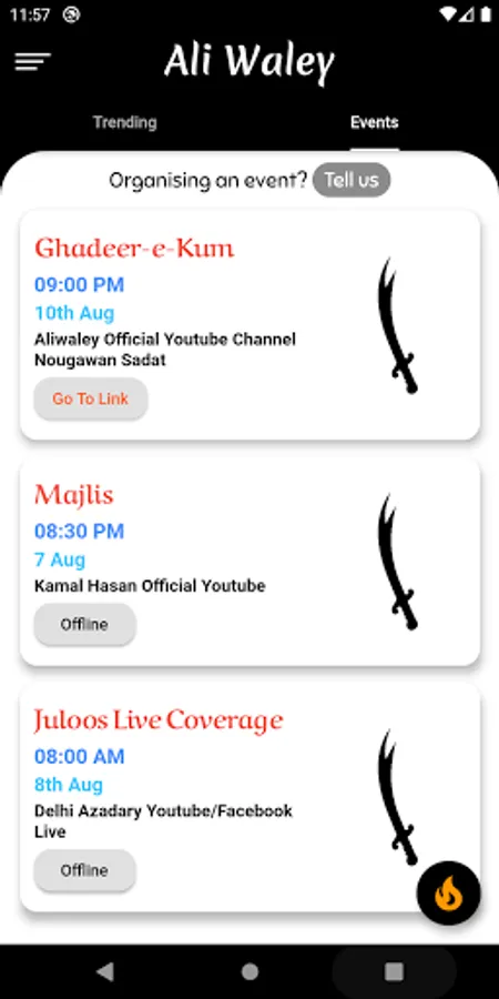 Keep track of any upcoming events from the Ali Waley App.