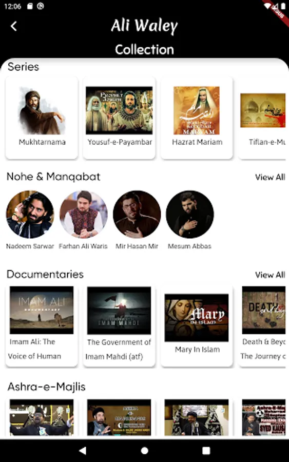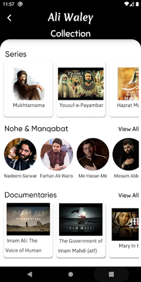 Explore vast media library which includes series like mukhtarnama, yousufnama, nohay playlist from various people, Majlis , documentaries, and more.