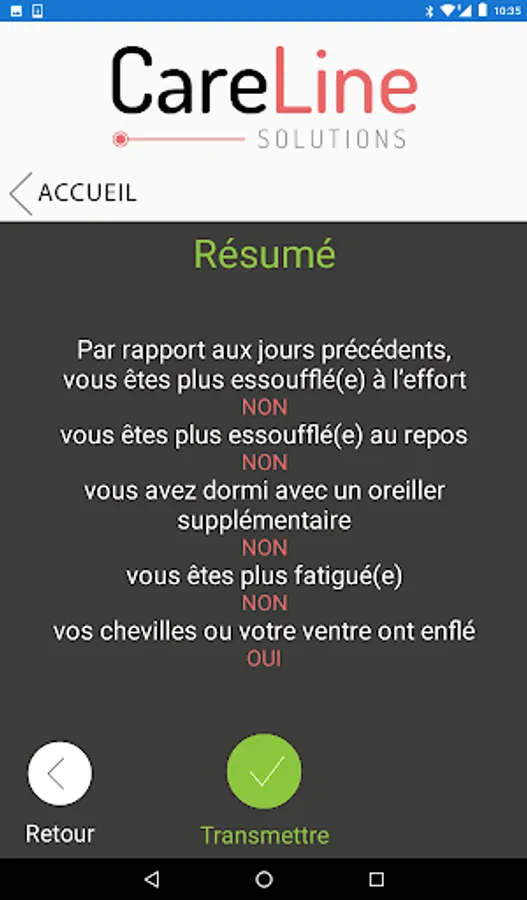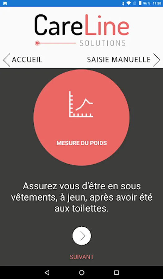 The parameters are measured by the patient daily using the balance for weight, and blood pressure monitor for blood pressure and heart rate. The data is automatically collected by the CareLine application to which the devices are associated.