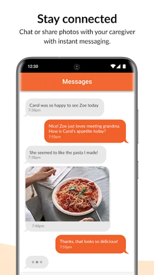 • Messaging: Message caregivers directly and get notified instantly when they reply
