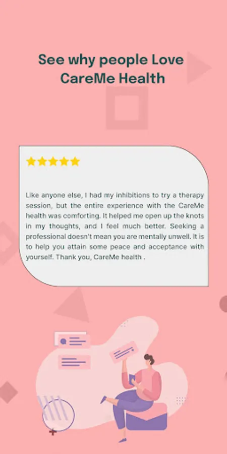 CareMe health gives you access to licensed therapists, psychiatrist straight from your phone any time of day, 24/7. Download the app and chat with a provider with the tap of a button and message via text, audio, and video on a secure platform.
