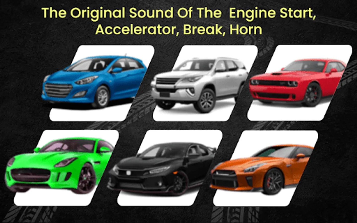 Luxury Car Sound Sim app gives 50 super car engine sounds, brake and horn. Super Car Engine, Brake & Horn Sound Simulator app is easy to use. Luxury Car Sound Simulator is internet free.!
